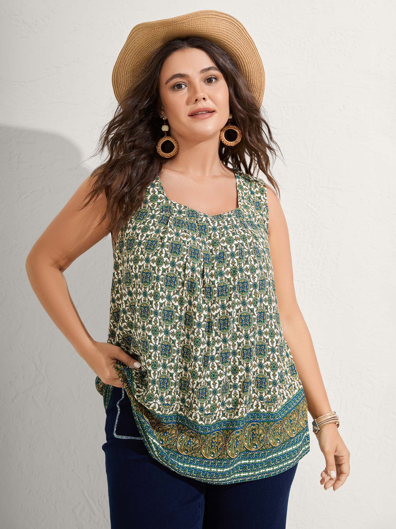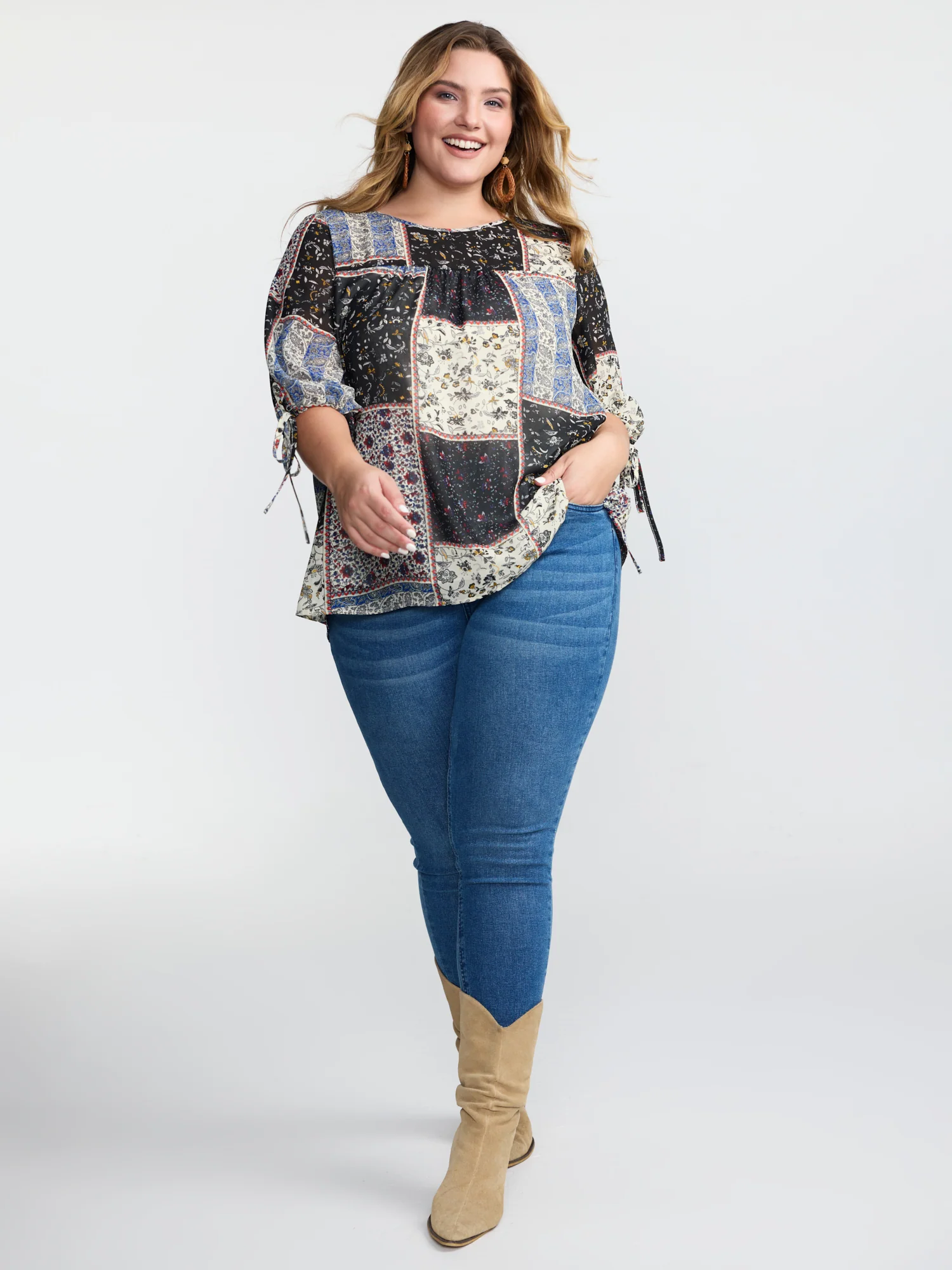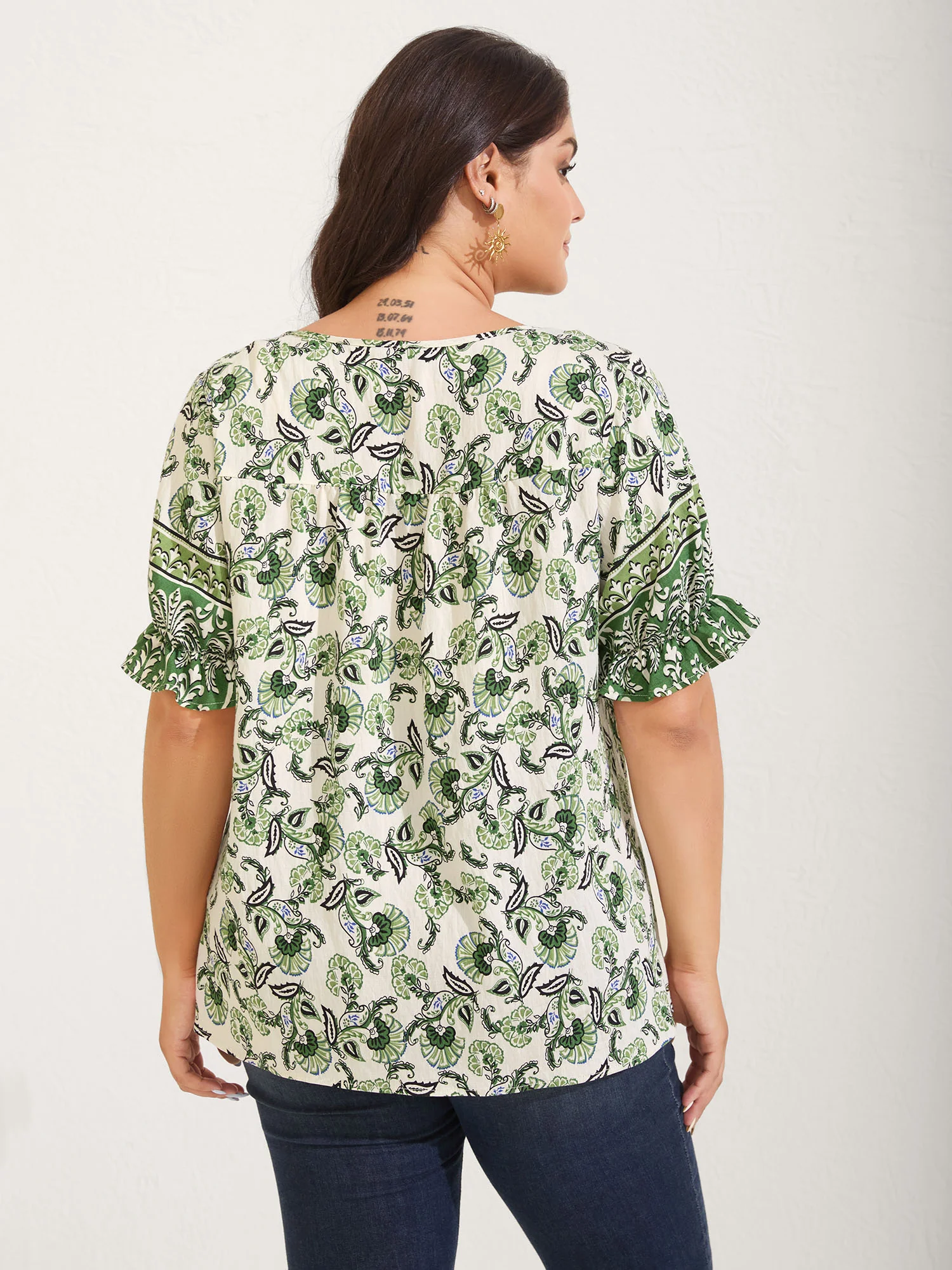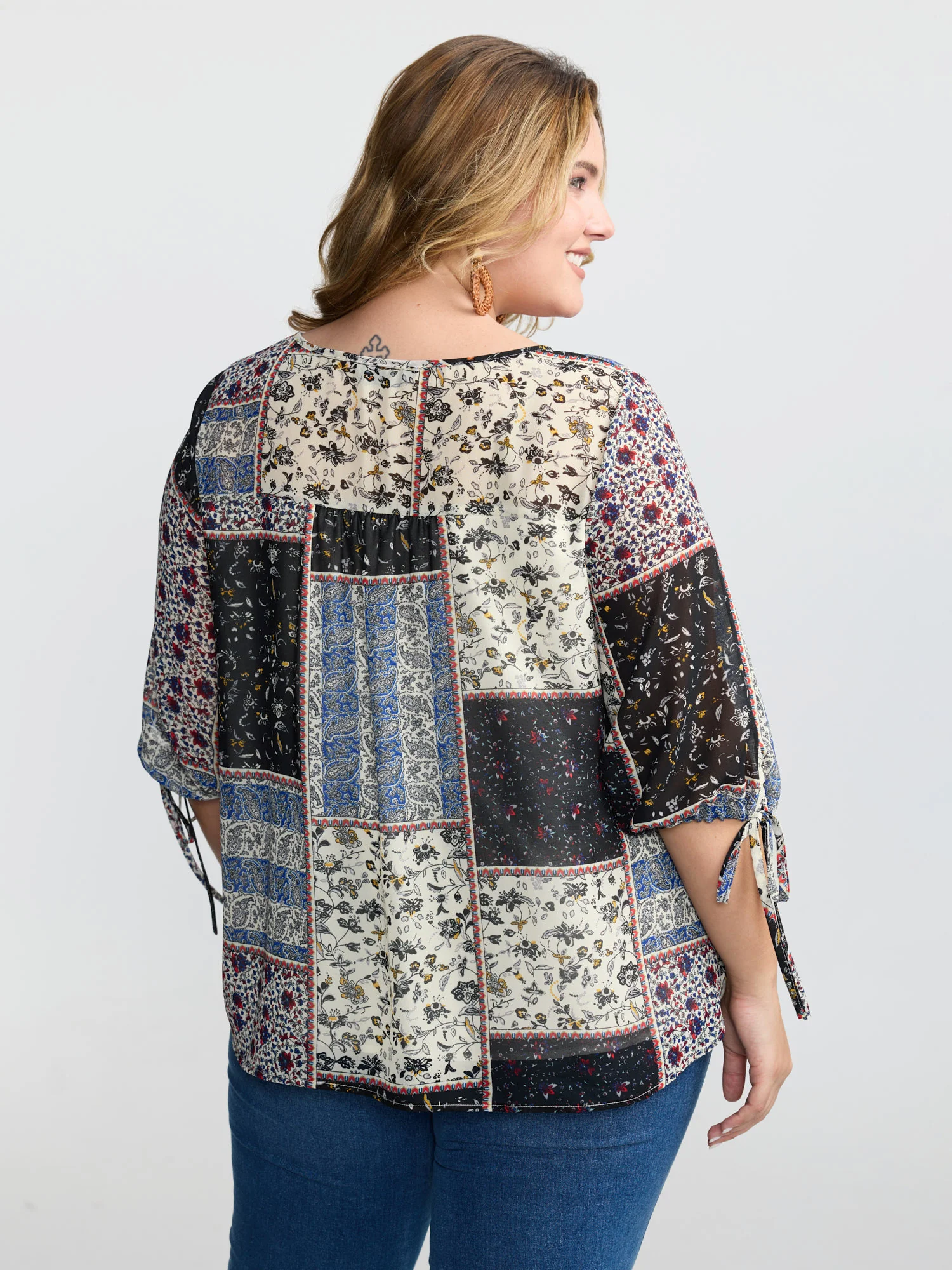 Boho Print Mesh Ruched Crisscross One-Piece Swimsuit