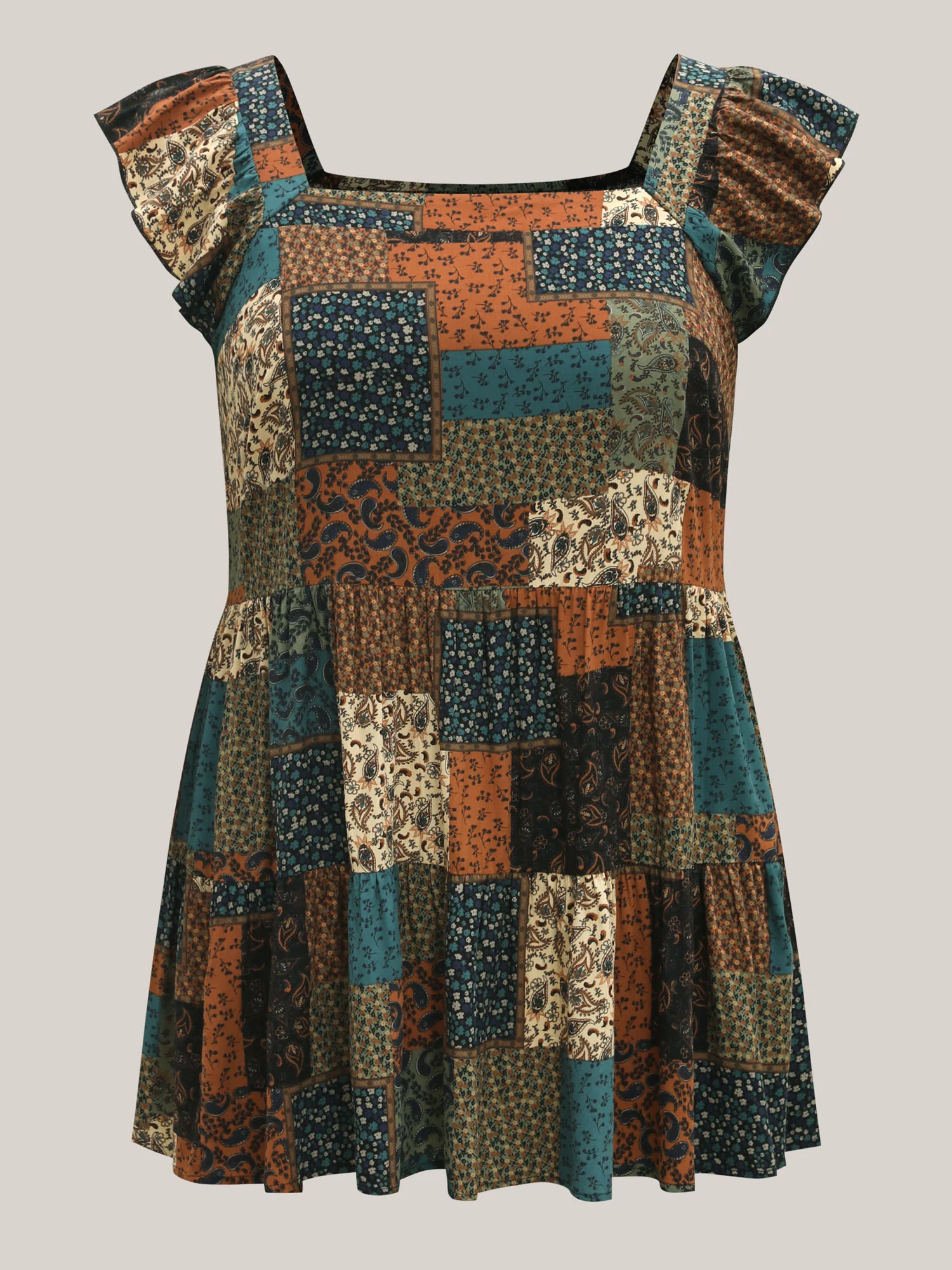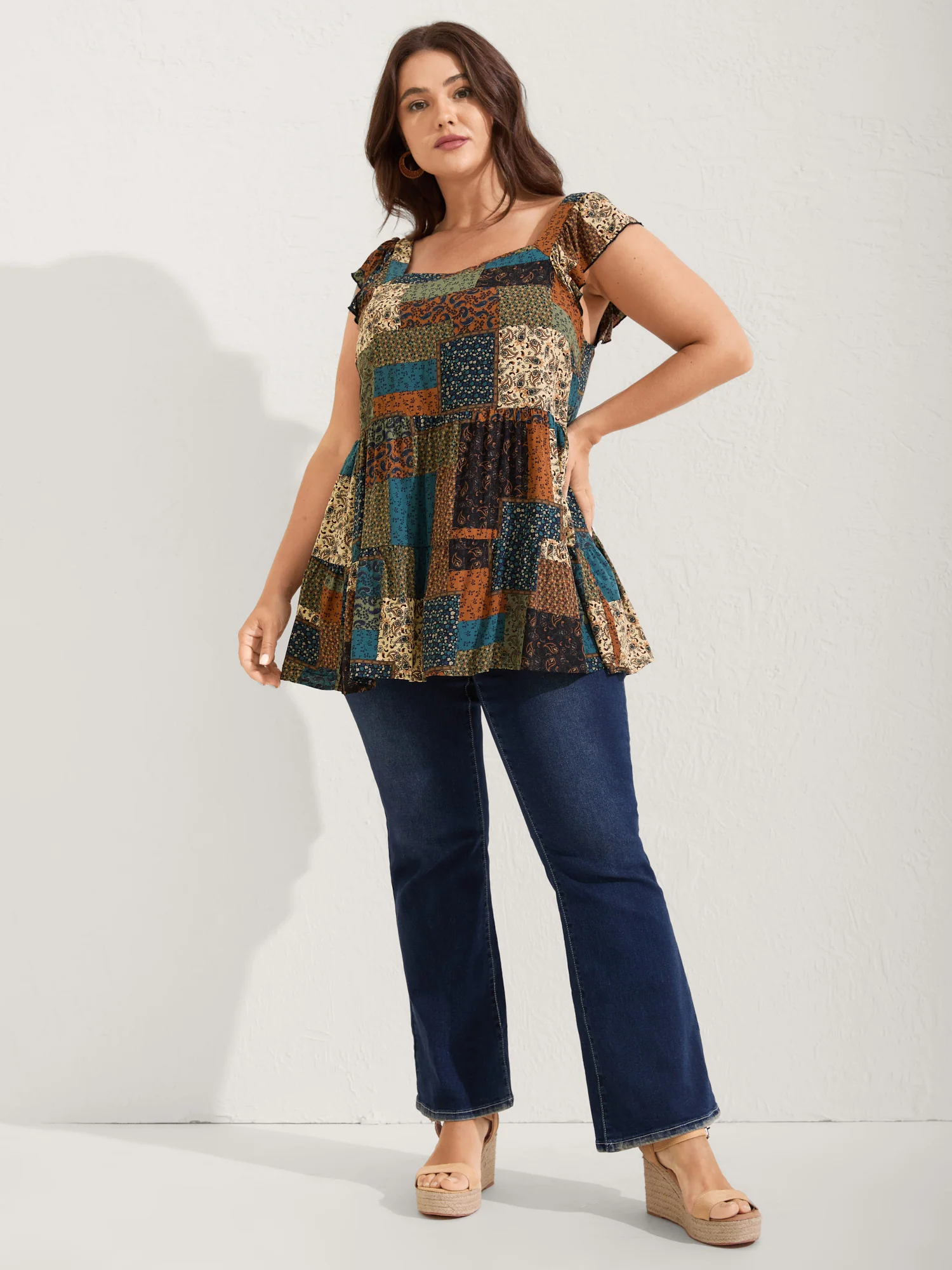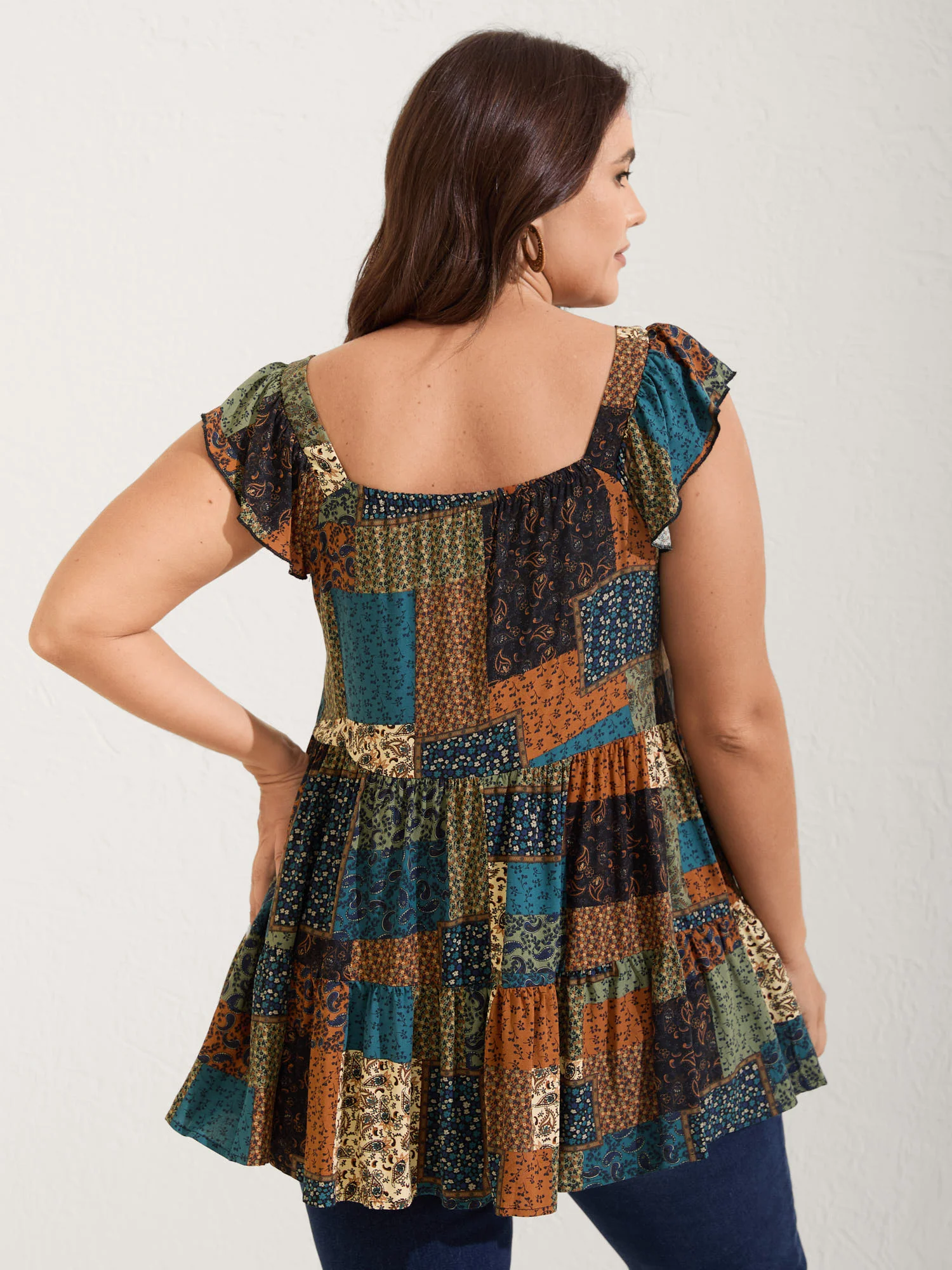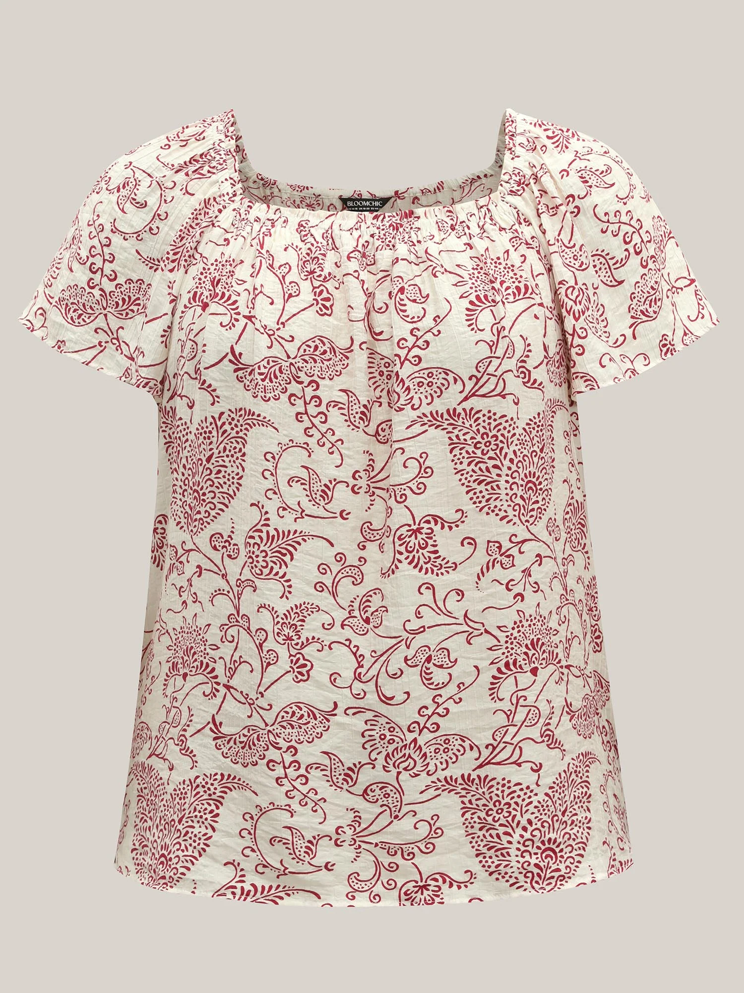 Boho Print Mesh Ruched Crisscross One-Piece Swimsuit