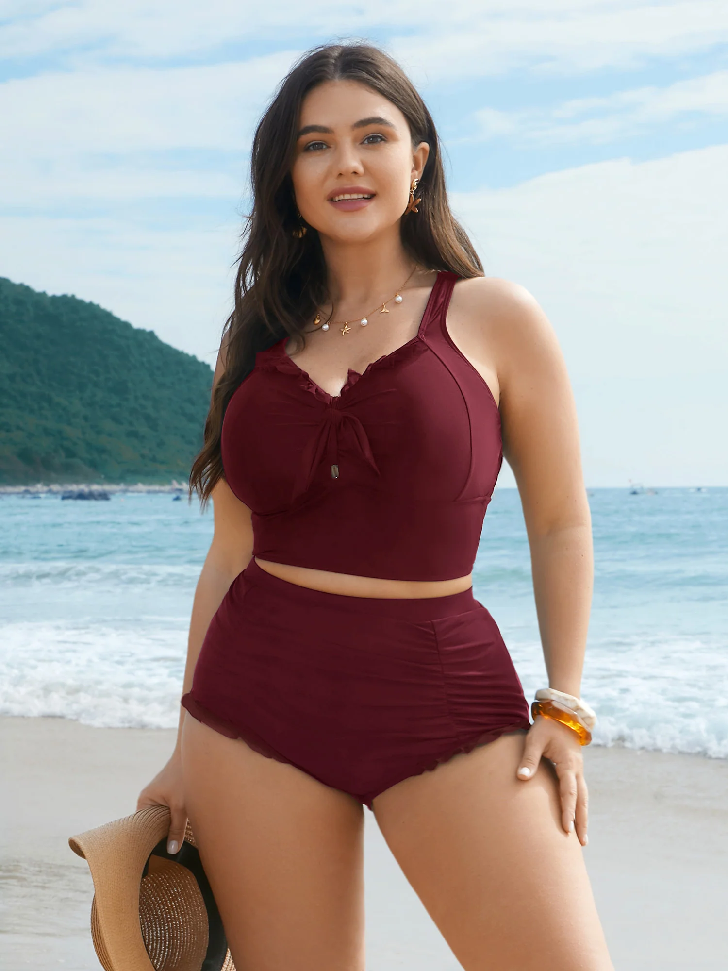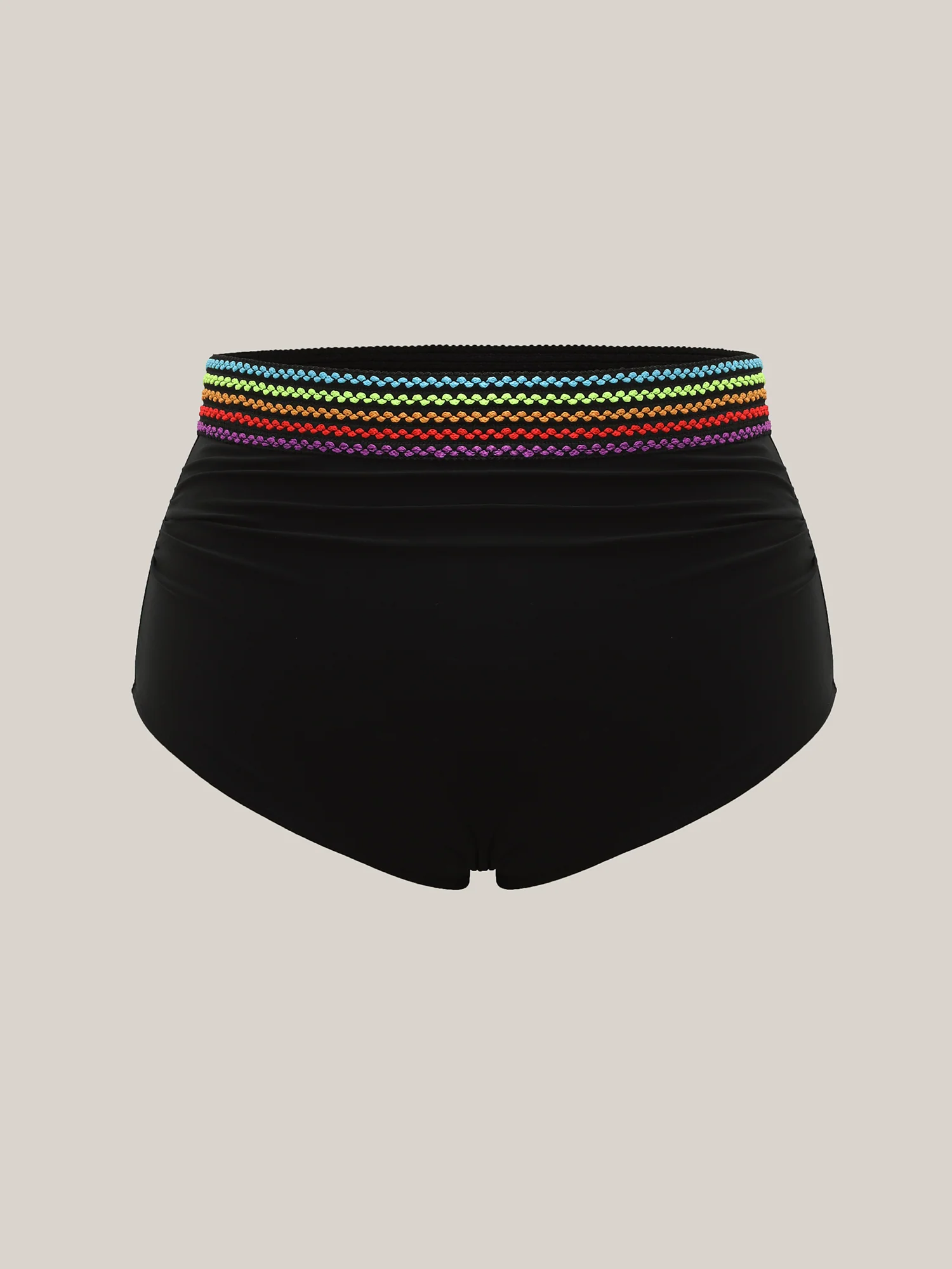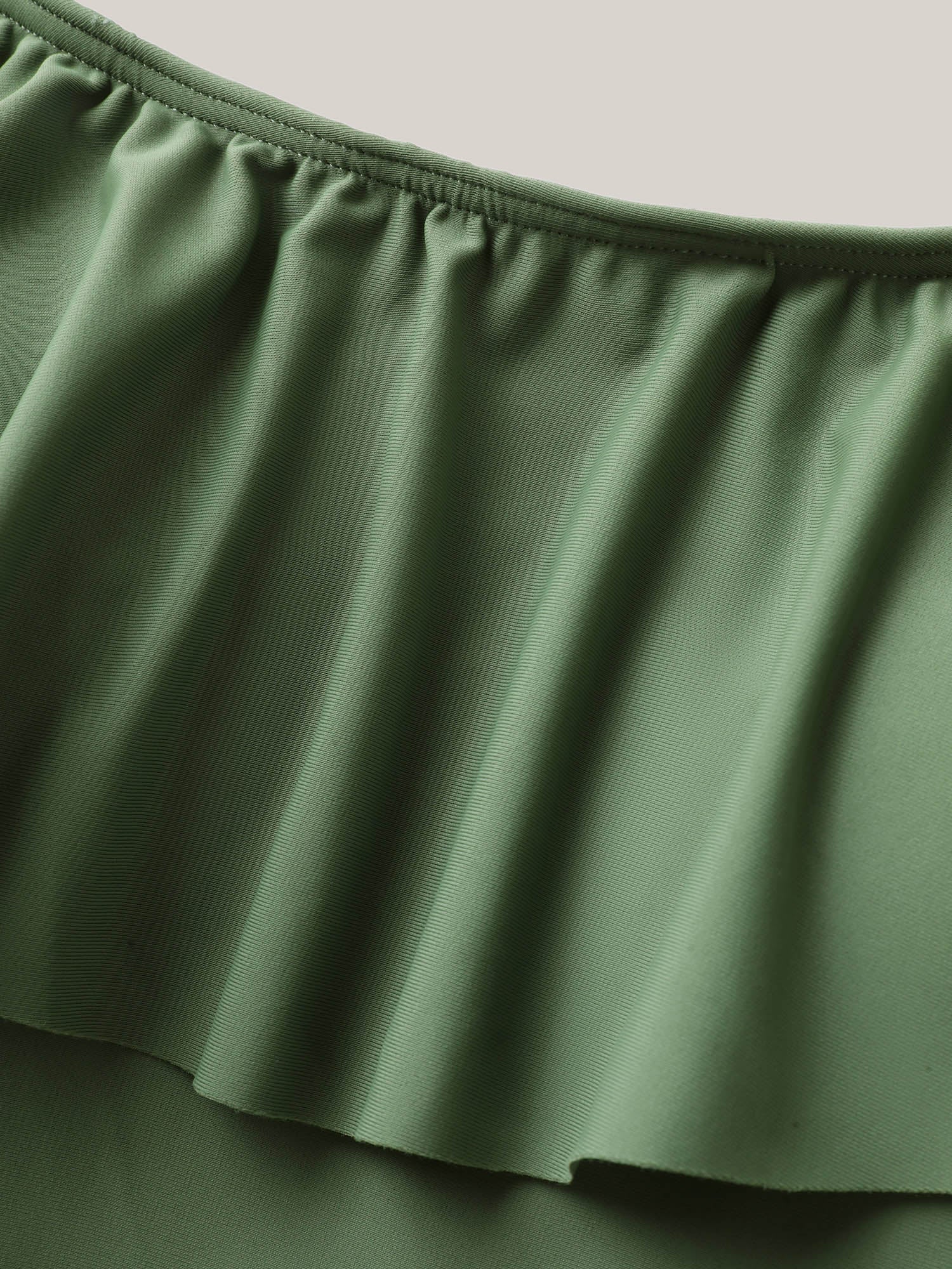 Ruched Mesh Seamed Ruffle Trim Swim Bottoms