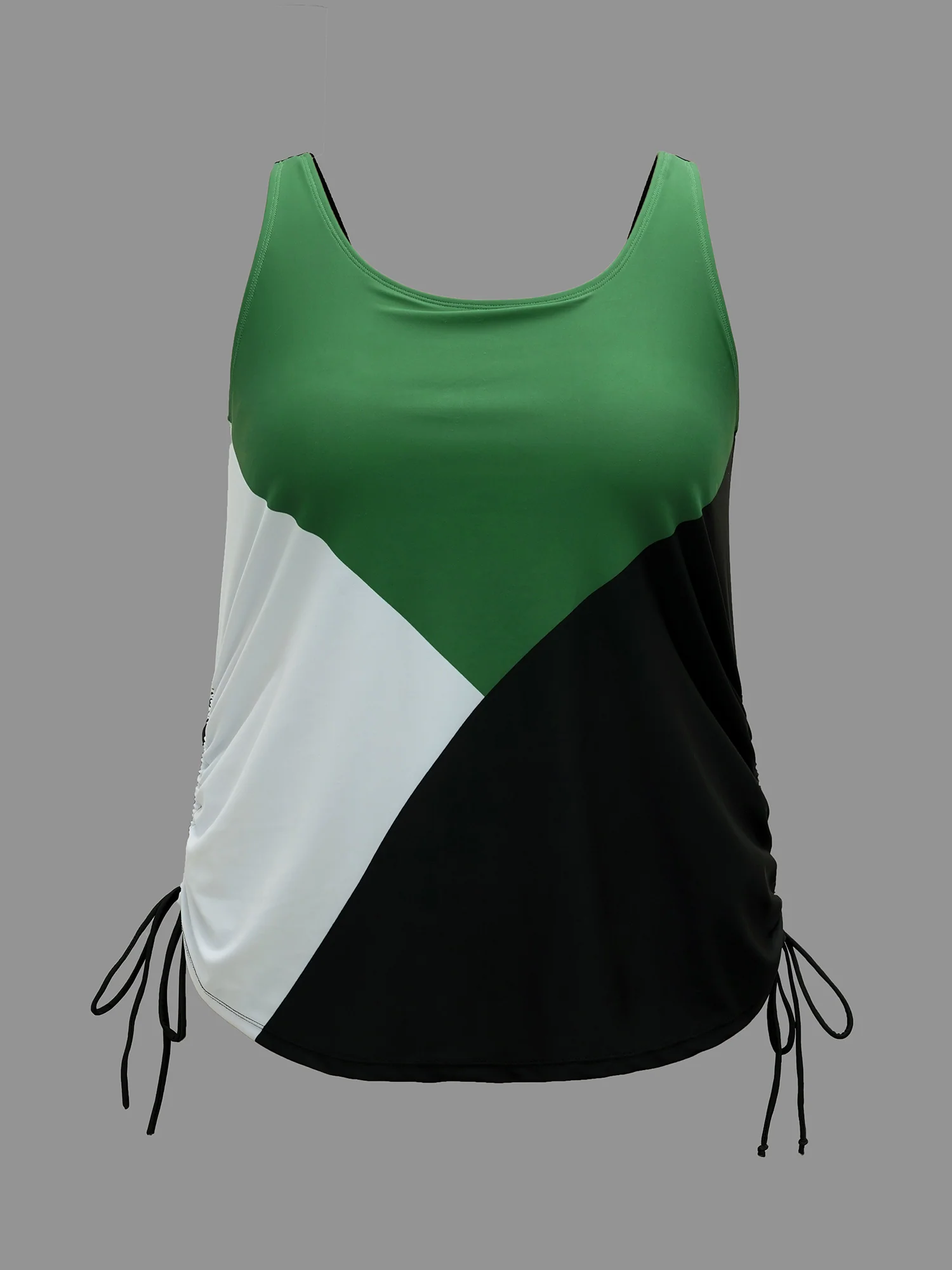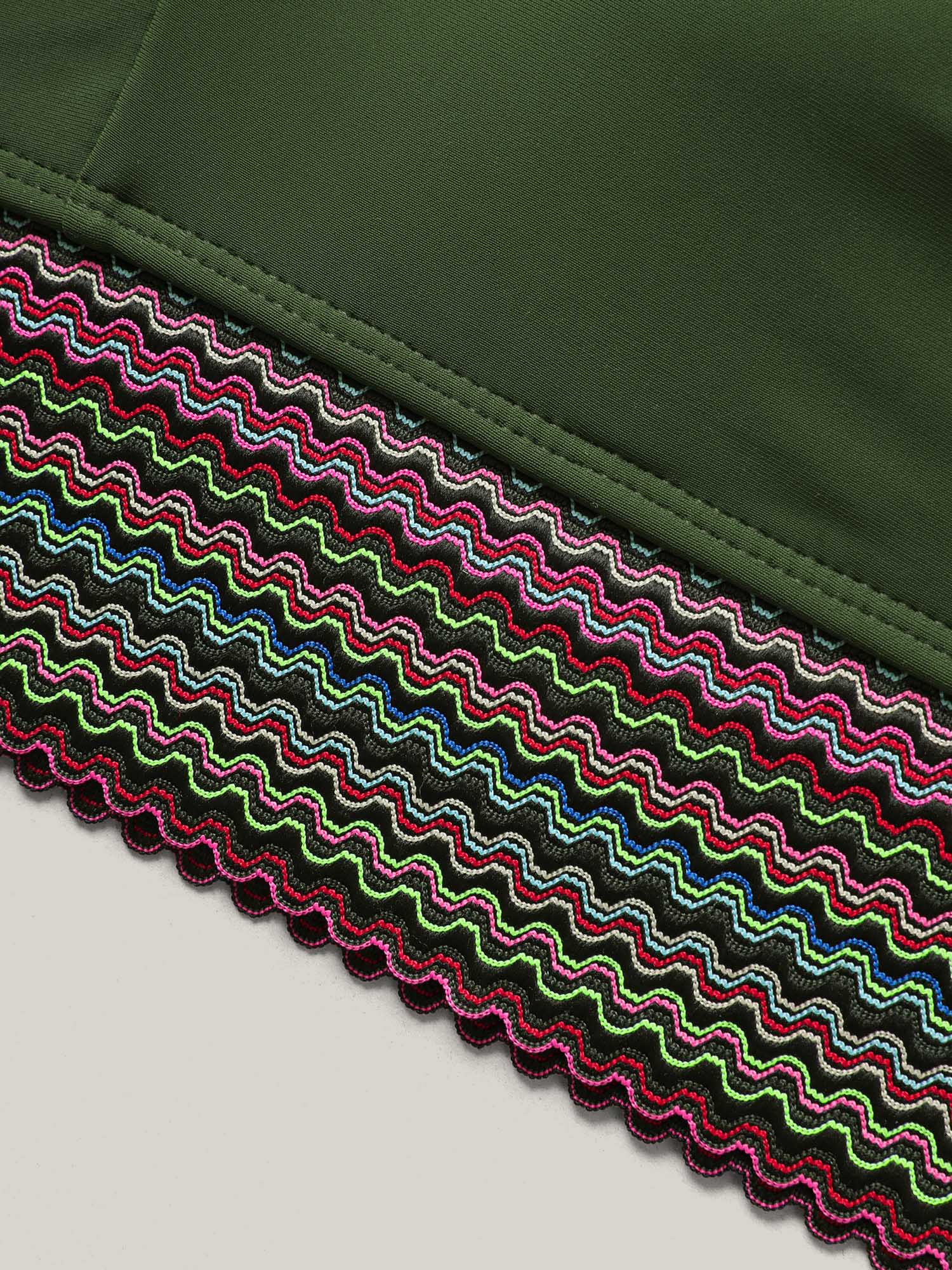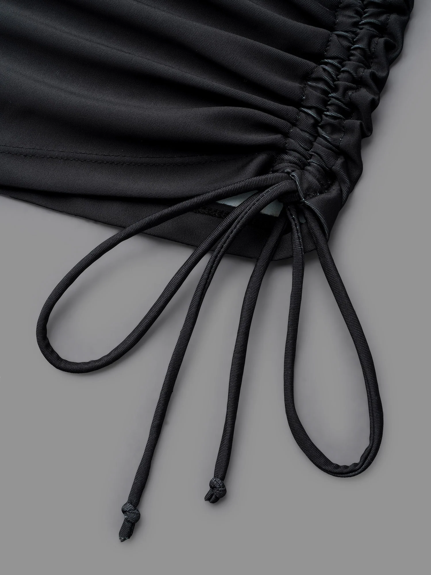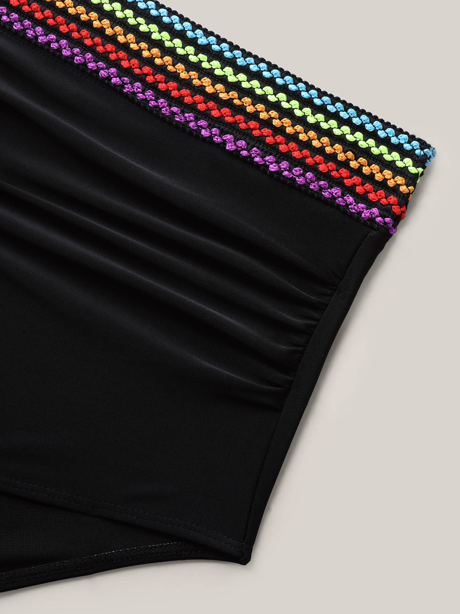 Ruched Mesh Seamed Ruffle Trim Swim Bottoms