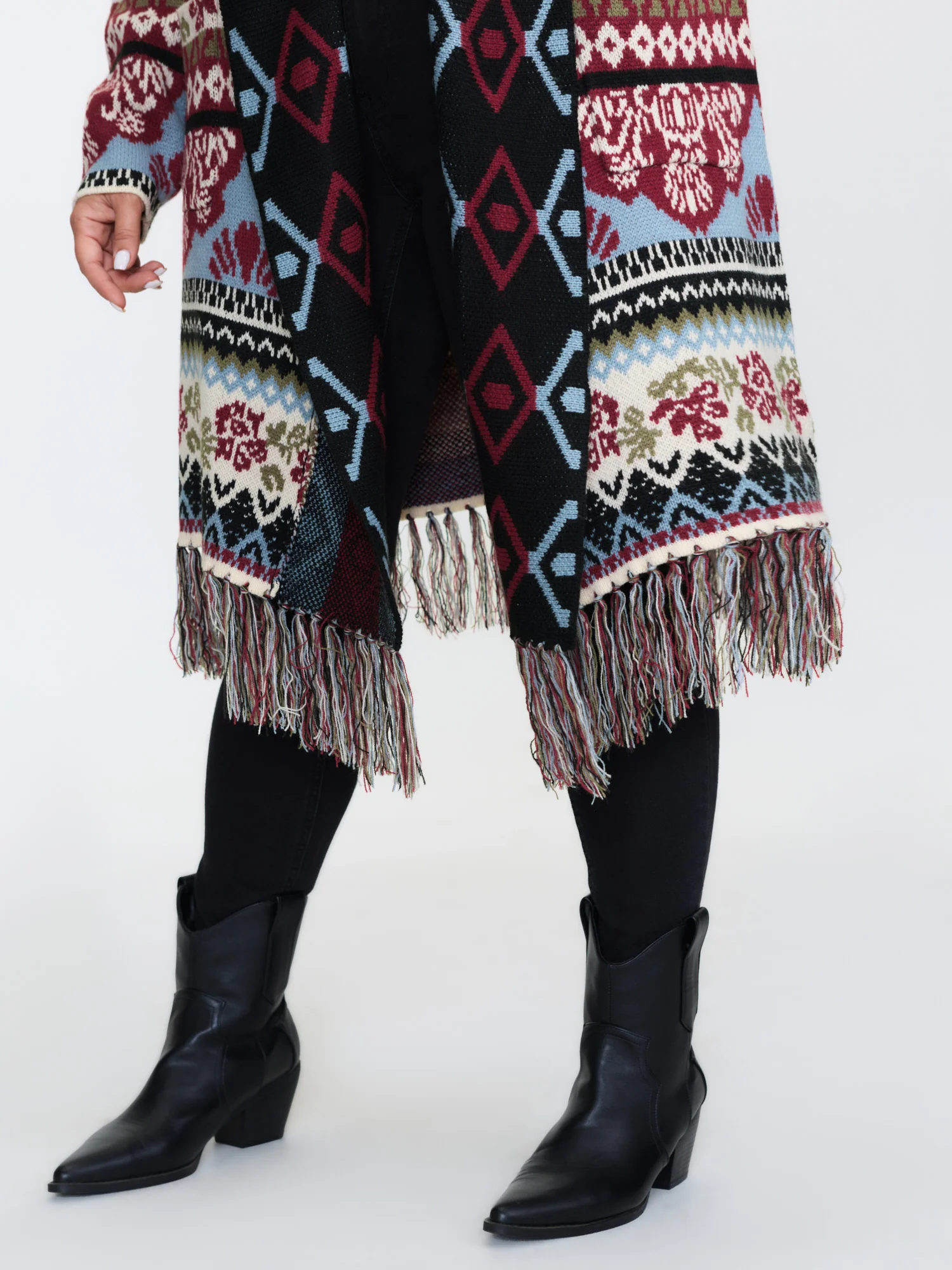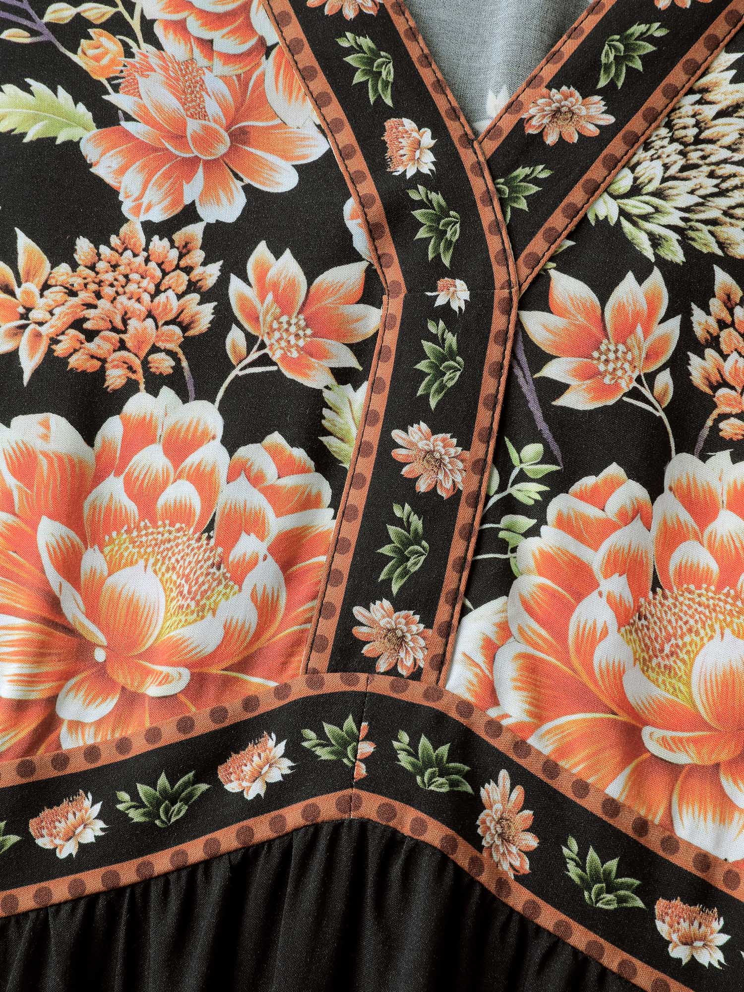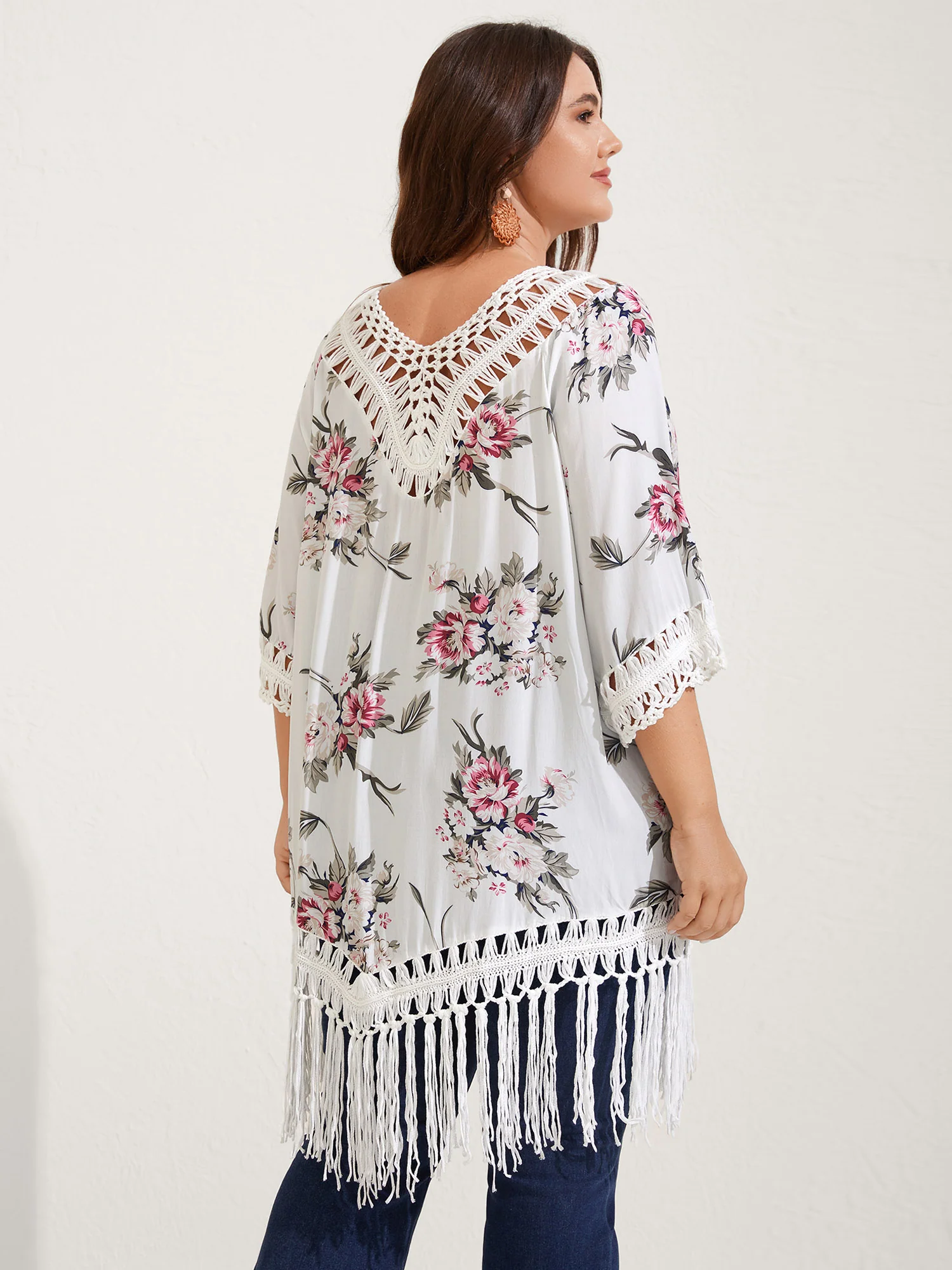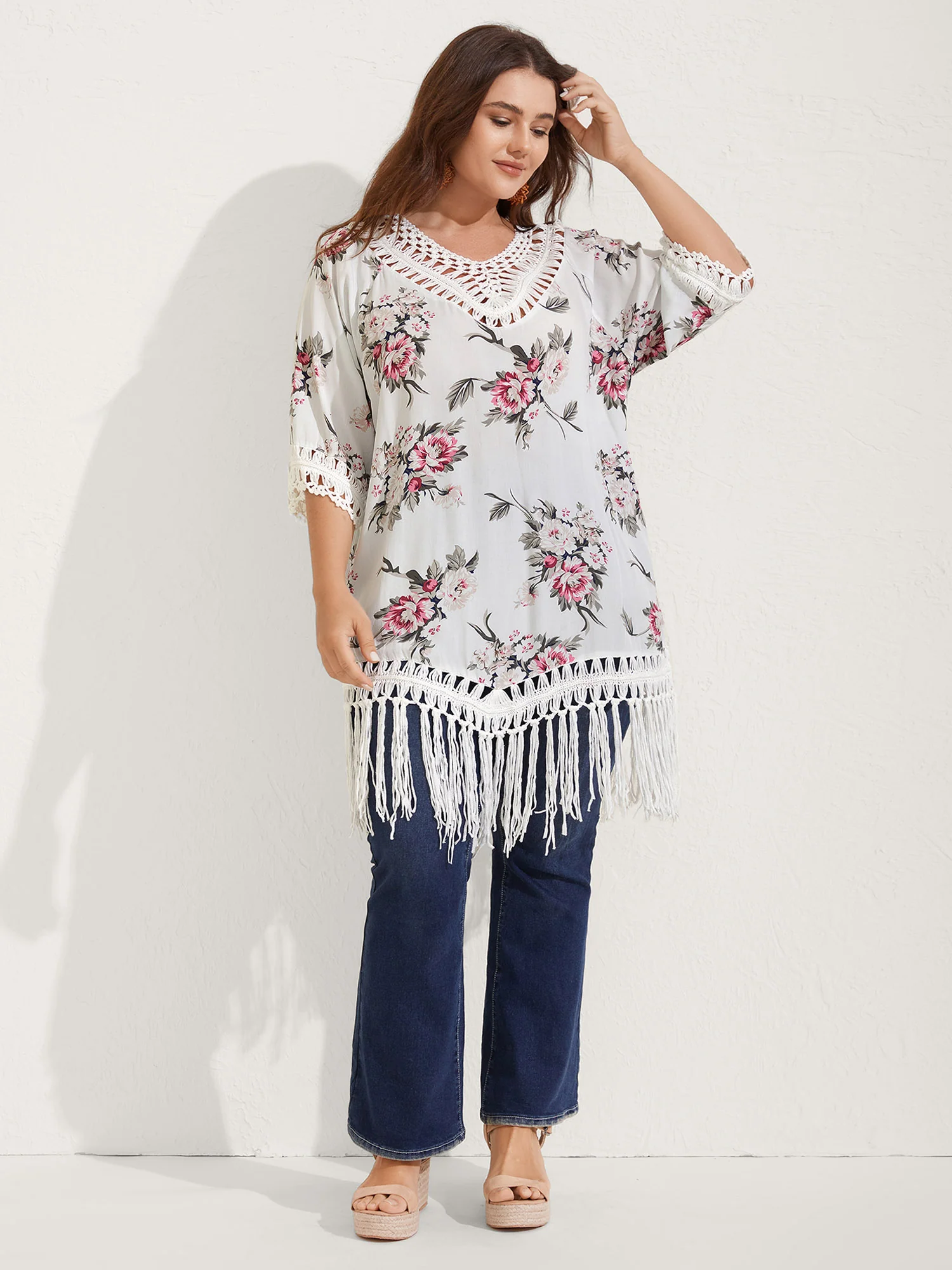 Floral Print Crochet Fringe Hem Swim Cover-Up
