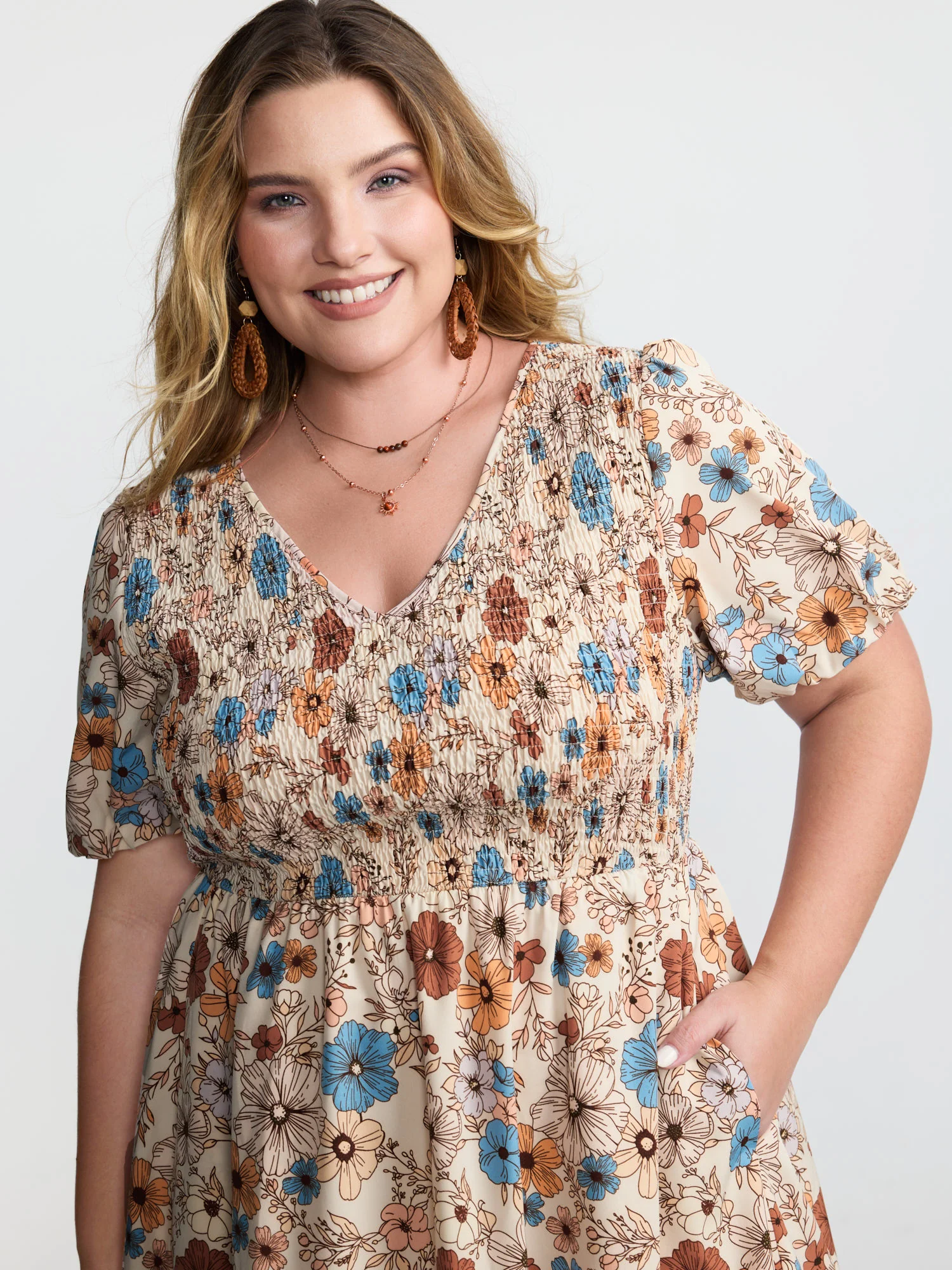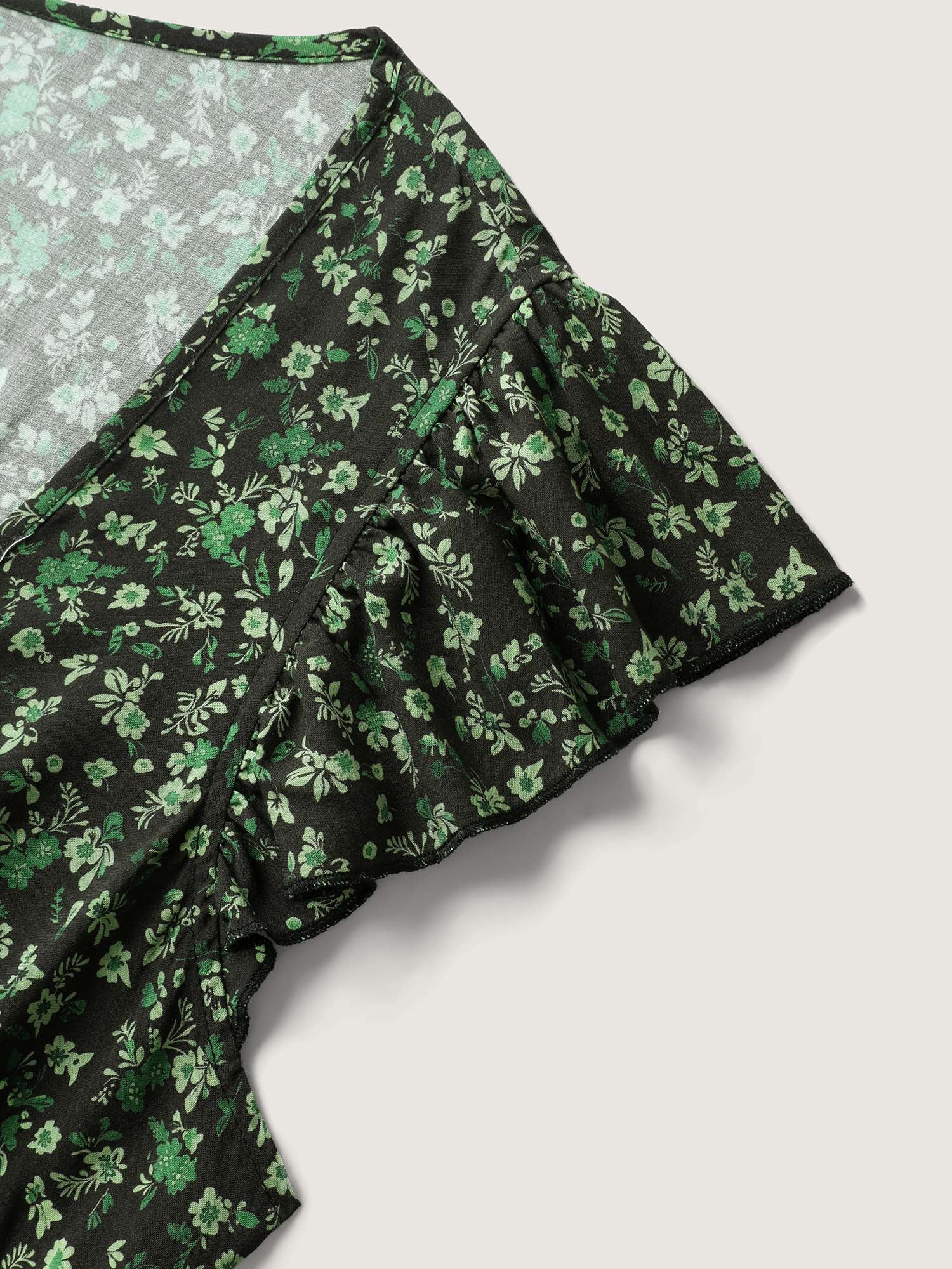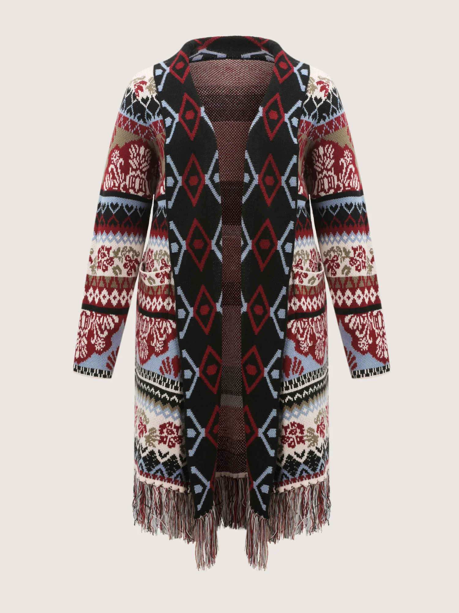Floral Print Crochet Fringe Hem Swim Cover-Up