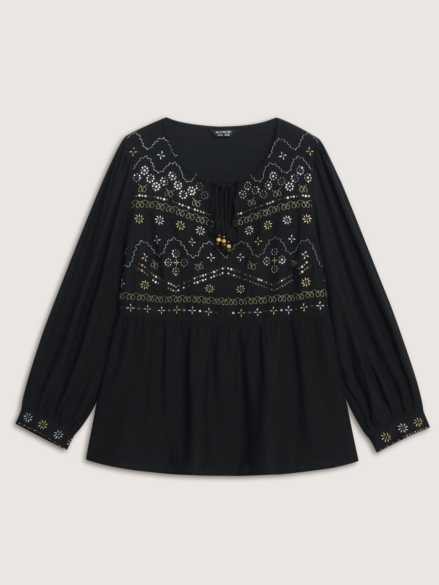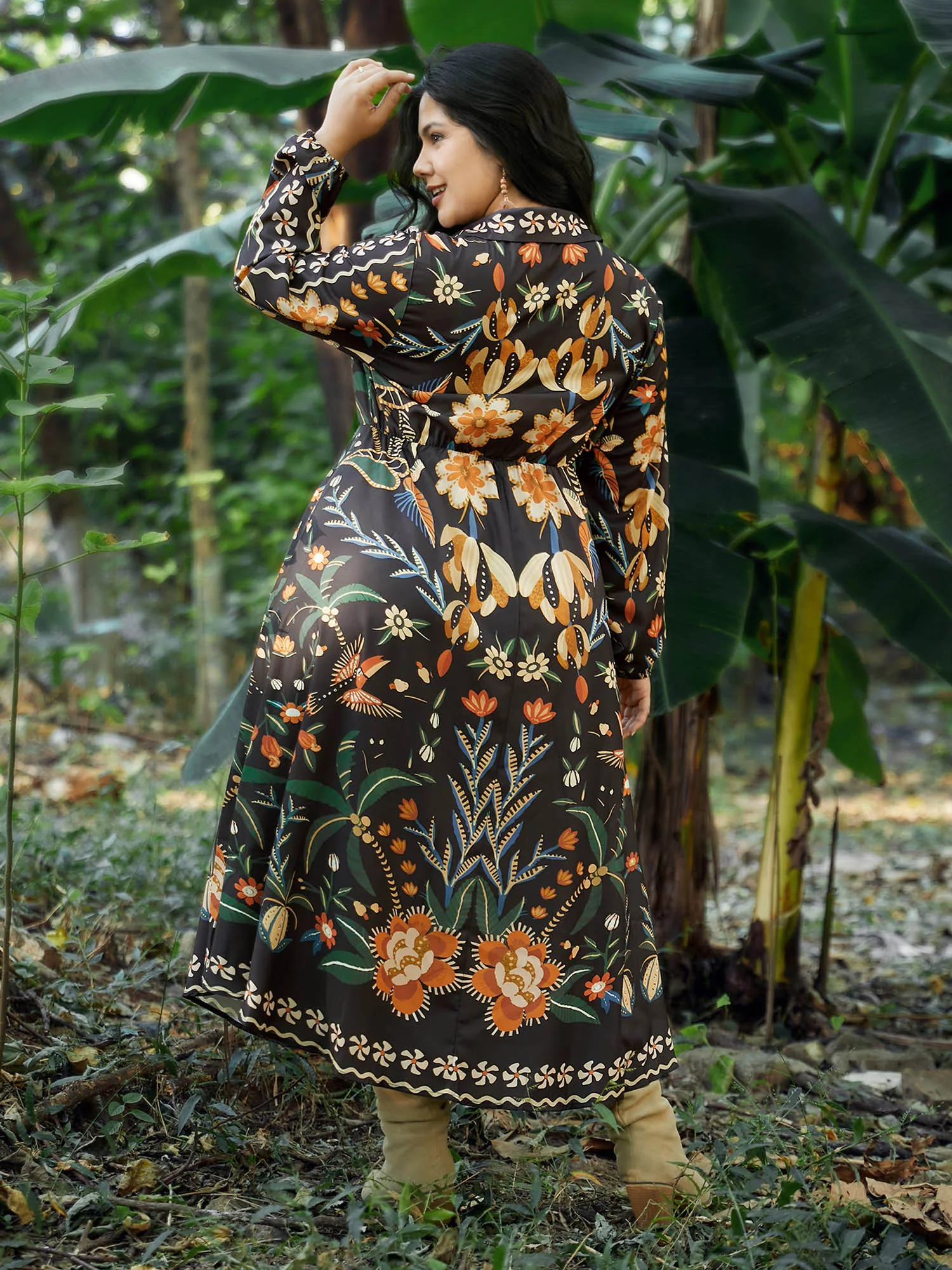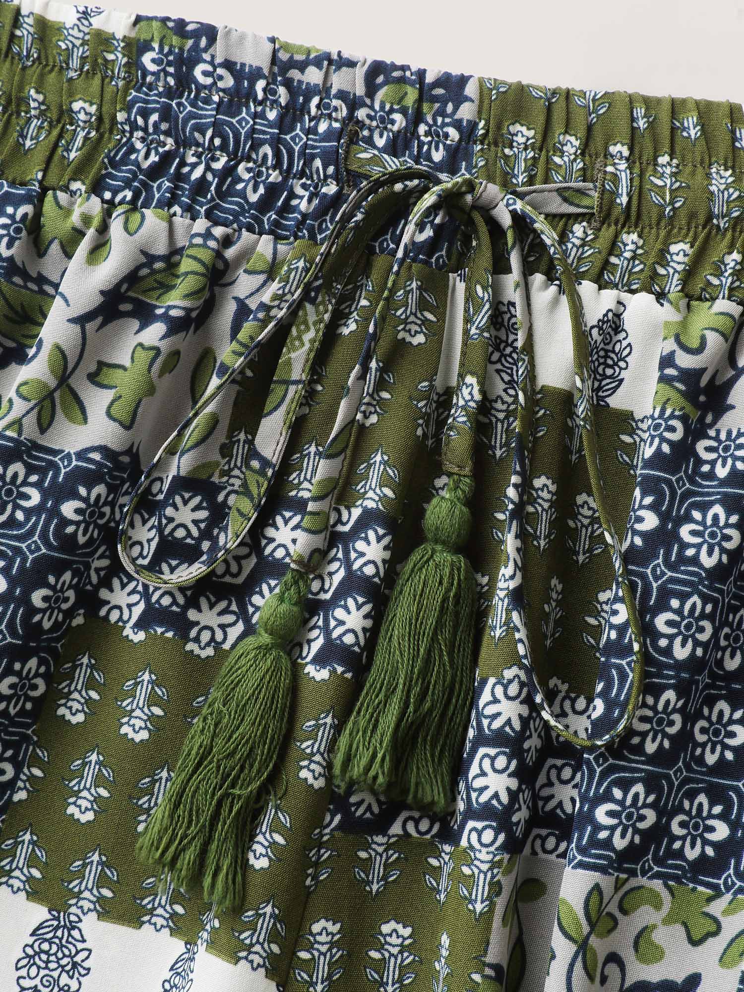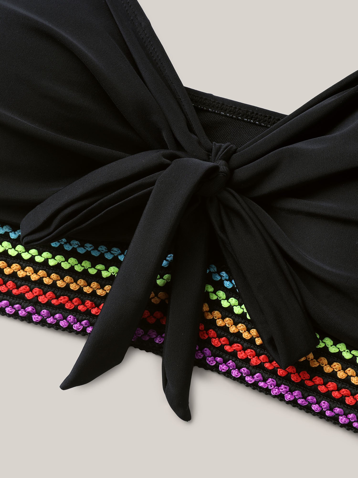 Floral Print Crochet Fringe Hem Swim Cover-Up