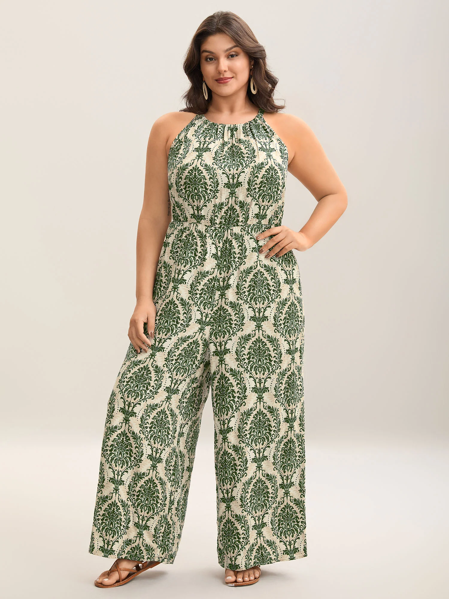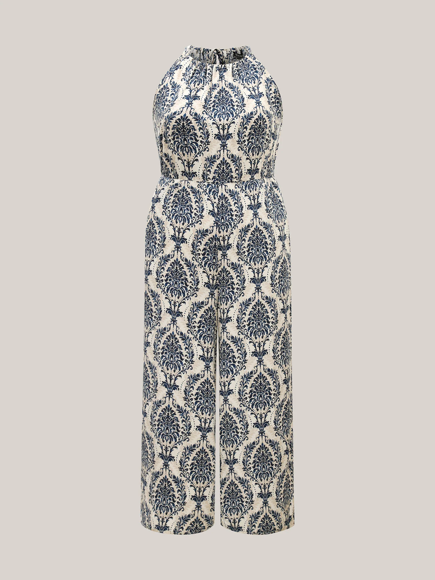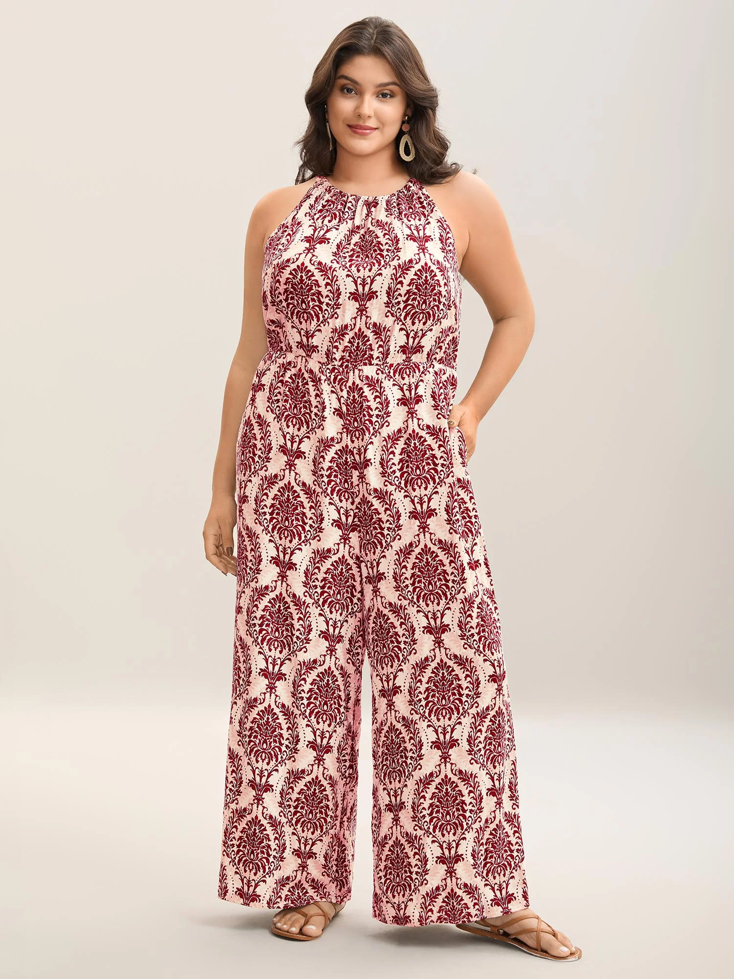 Rayon Damask Print Stretchy Waist Jumpsuit