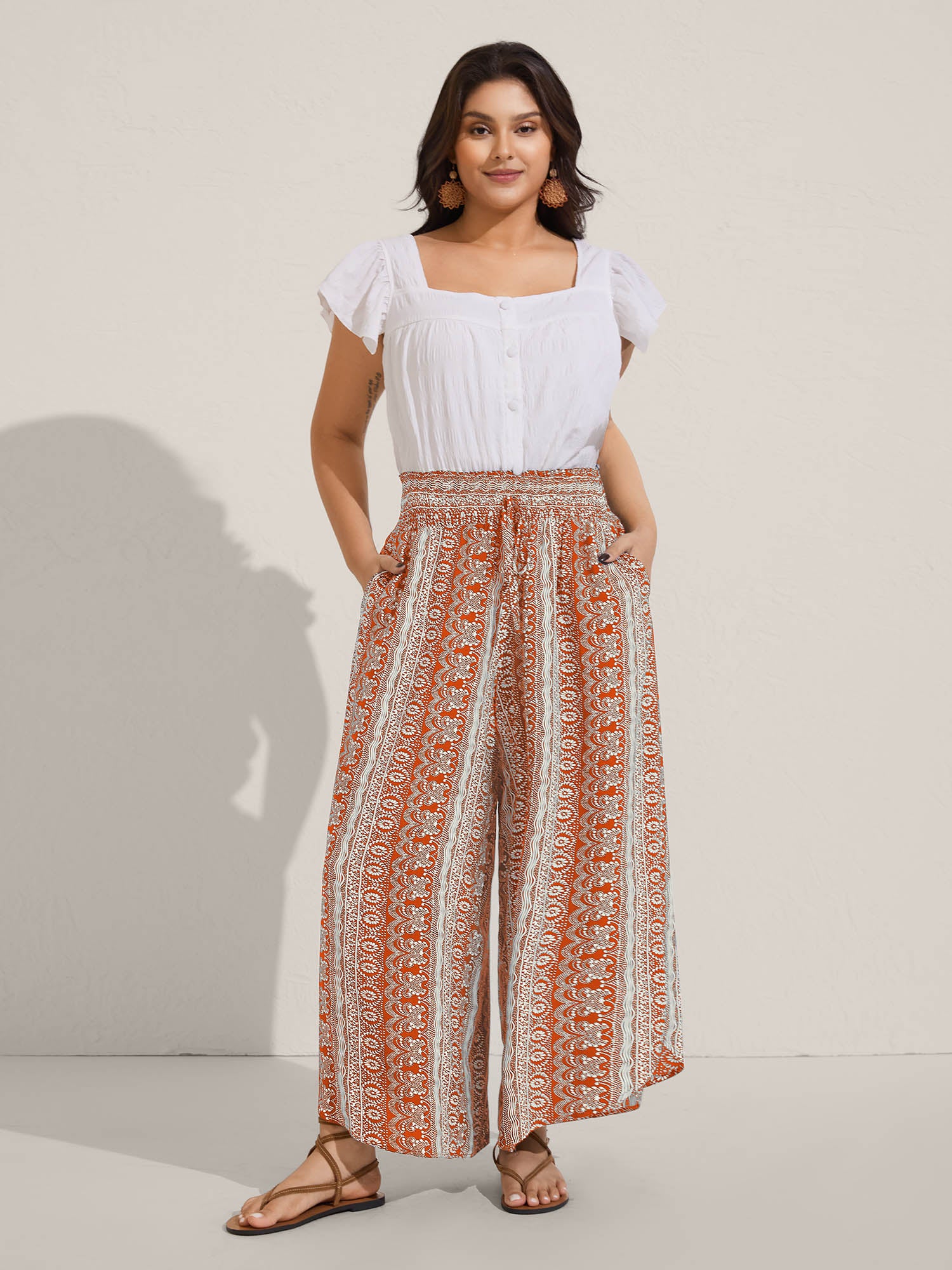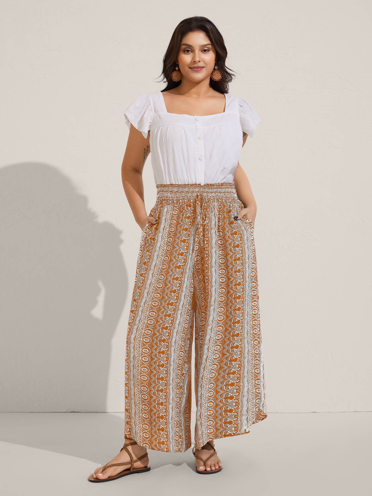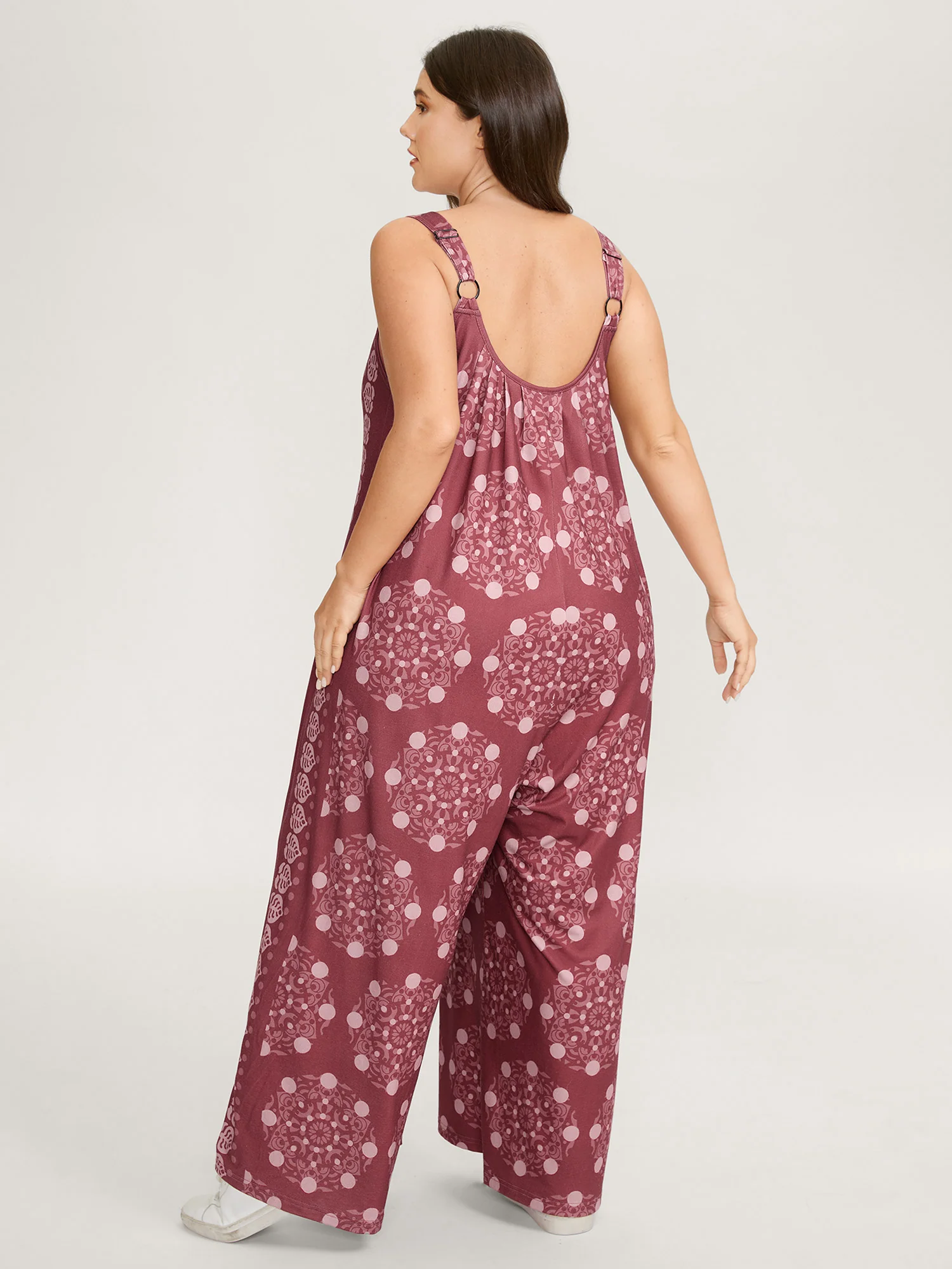 Rayon Damask Print Stretchy Waist Jumpsuit