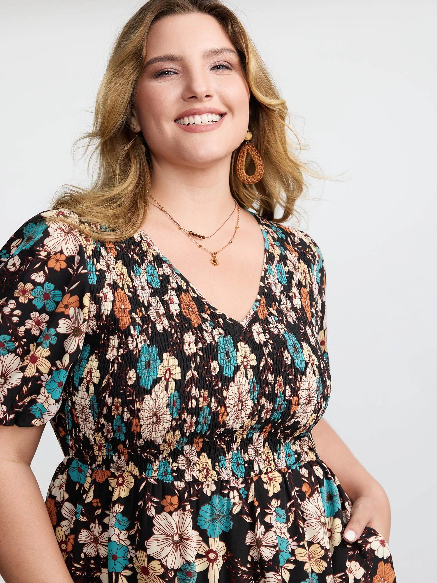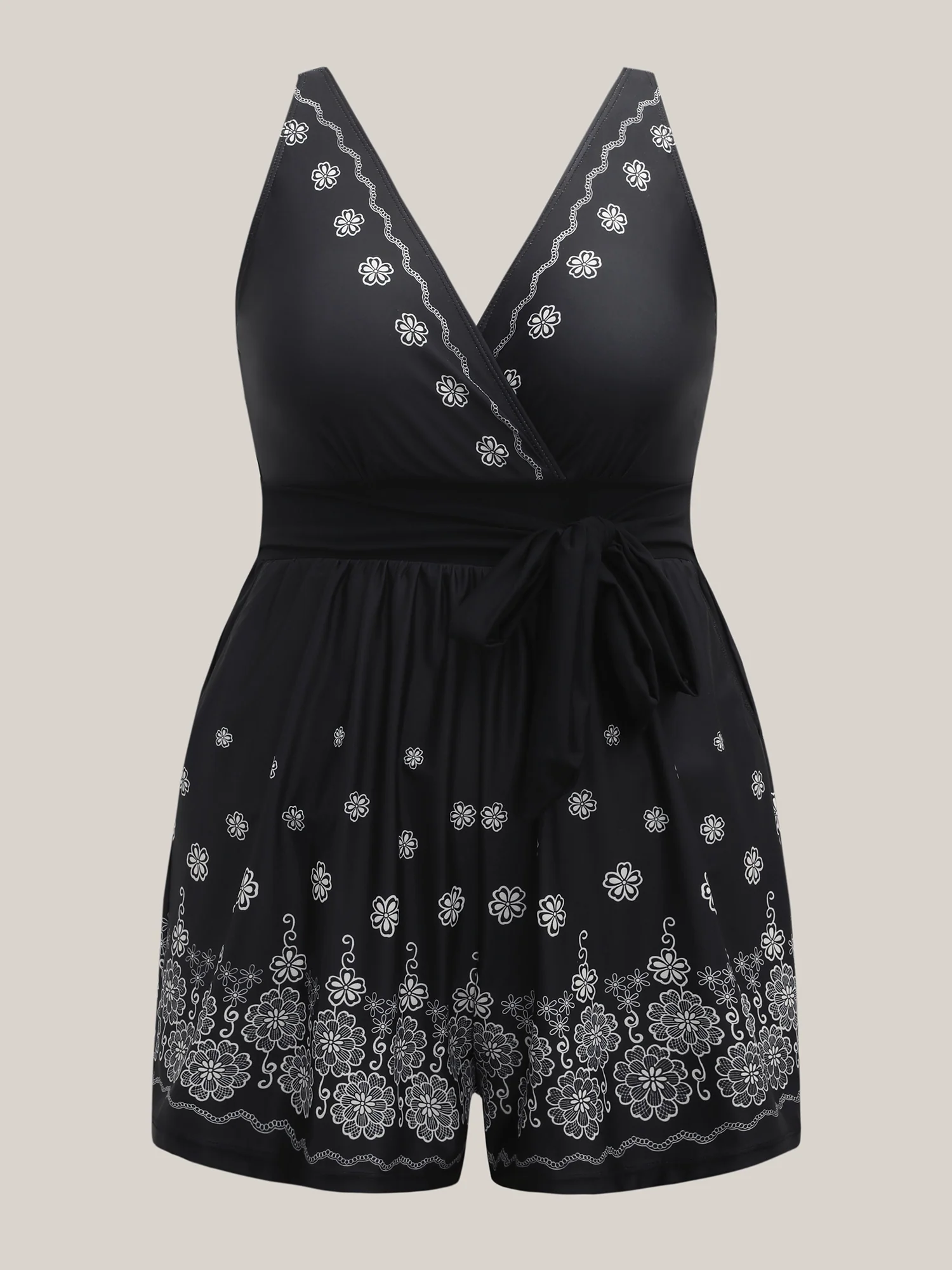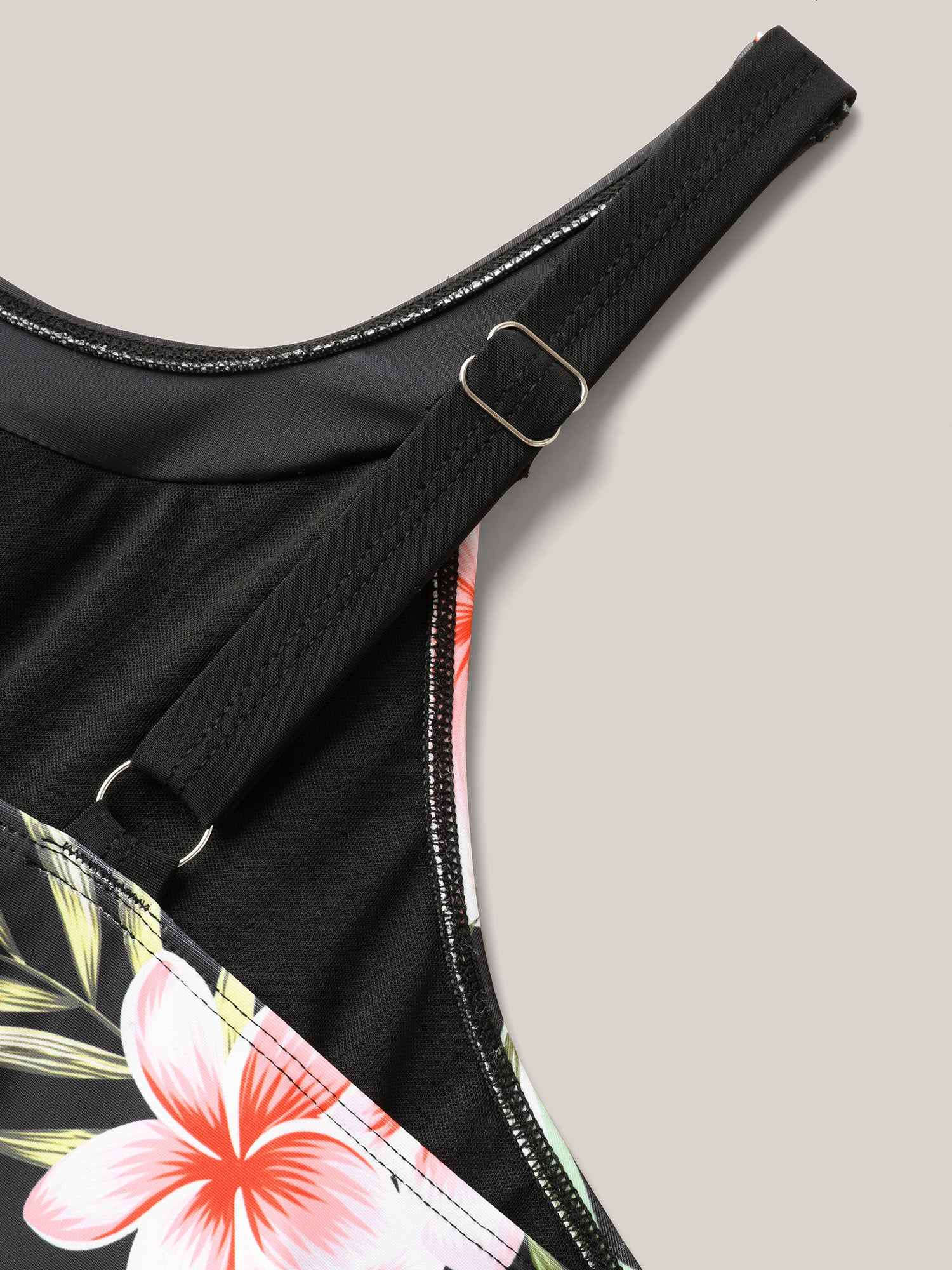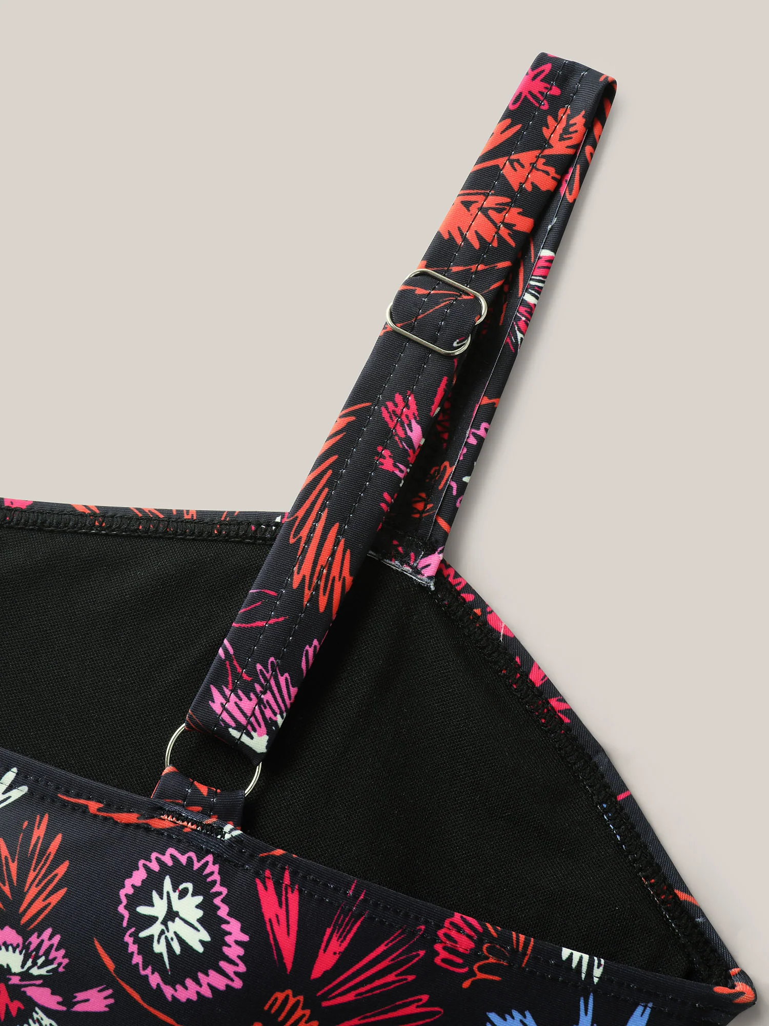 Floral Removable Cups Pocket One-Piece Swimsuit