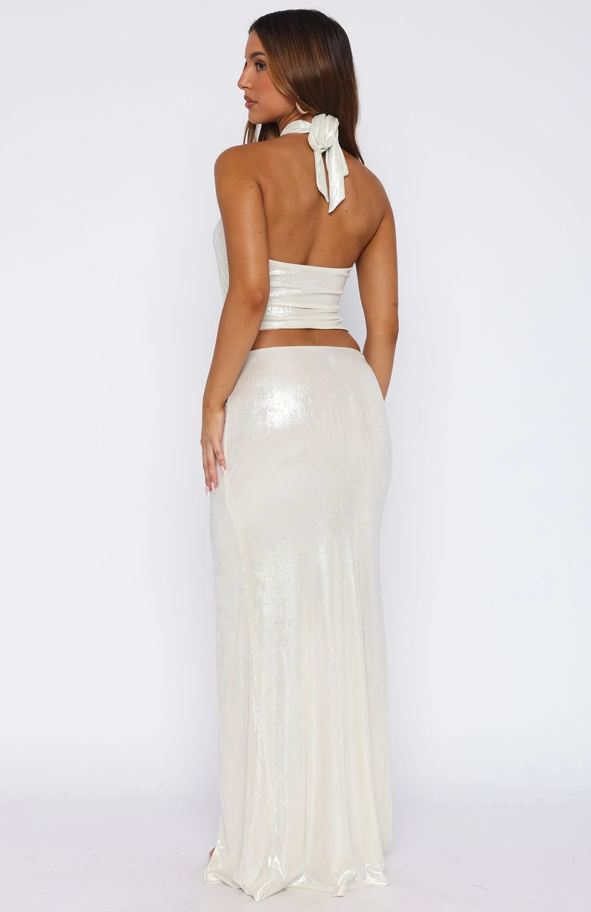 Butterfly Blossom Sequin Knit Maxi Dress White